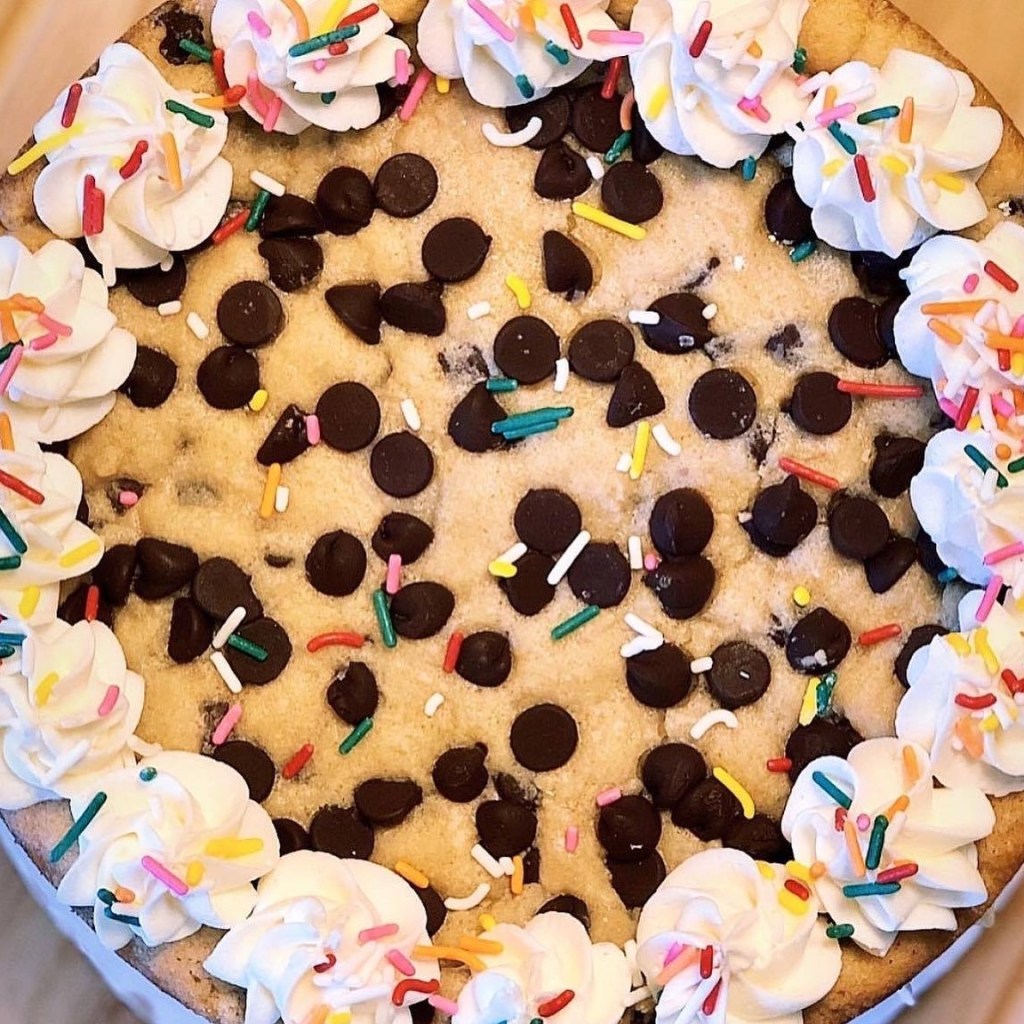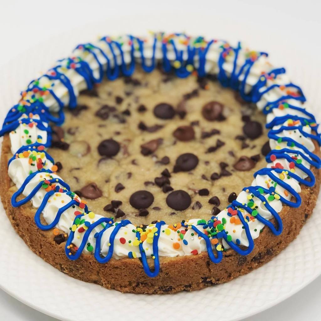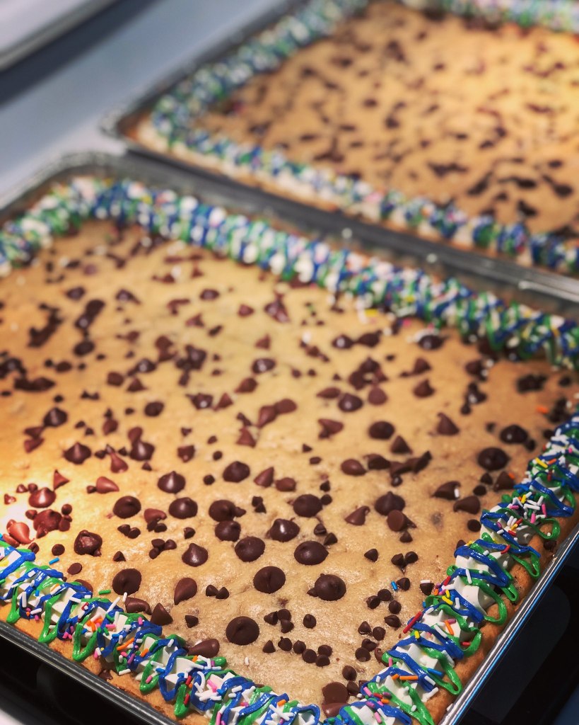 If you have another event in need of an enormous, sliceable cookie, we make these cakes in all shapes, sizes, and colors with custom text.